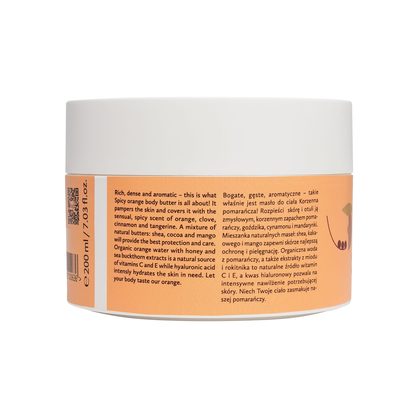 Ingredients / Skład INCI: Aqua, Caprylic/Capric Triglyceride, Isoamyl Laurate, Theobroma Cacao (Cocoa) Seed Butter, Butyrospermum Parkii (Shea) Butter, Cetearyl Olivate (and) Sorbitan Olivate, Glycerin, Butyrospermum Parkii (Shea) Butter, Glyceryl Stearate Citrate, Cetearyl Alcohol, Arachis Hypogaea (Peanut) Oil, Prunus Amygdalus Dulcis (Sweet Almond) Oil, Helianthus Annuus (Sunflower) Seed Oil, Euphorbia Cerifa (Candelilla) Wax, Adansonia Digitata (Baobab) Seed Oil, Mel (Honey) Extract, Hippophae Rhamnoides (Seabuckthorn) Fruit Extract, Hippophac Rhamnoides (Sea Buckthorn) Fruit Oil, Citrus Aurantium Dulcis (Orange) Peel Oil, Citrus Nobilis (Tangerine) Peel Oil, Cinnamomum Zeylanicum (Cinnamon) Bark Oil, Eugenia Caryophyllus (Clove) Bud Oil, Mangifera Indica (Mango) Seed Butter, Tocopherol (Vitamin E), Parfum, Sodium Benzoate, Potassium Sorbate, Dehydroacetic Acid, Benzyl Alcohol*, Xanthan Gum, Citral*, Coumarin*, Eugenol*, Geraniol*, Limonene*, Linalool*